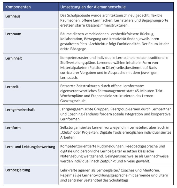 Tabelle 1. Komponenten Lernkulturwandel für die Alemannenschule